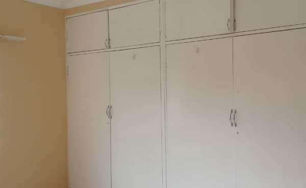 A fitted kitchen with ample cupboard space and room for a double-door fridge. (Please note: stove not included.) - Bedrooms: