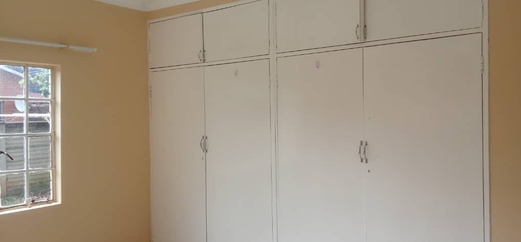 A fitted kitchen with ample cupboard space and room for a double-door fridge. (Please note: stove not included.) - Bedrooms: